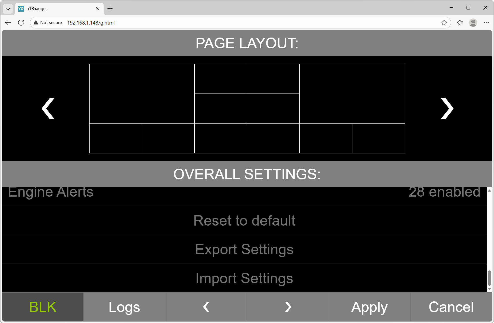 All these settings, as well as widget settings and data screen layouts, are stored in a special web browser storage and are linked to a specific browser on a specific user device. At the same time, Web Gauges have become so functional (just look at the default autopilot control page) that configuring them can take a lot of time. Now, import and export of settings has been added, which will allow you to easily transfer them between different browsers and devices and perform backups.