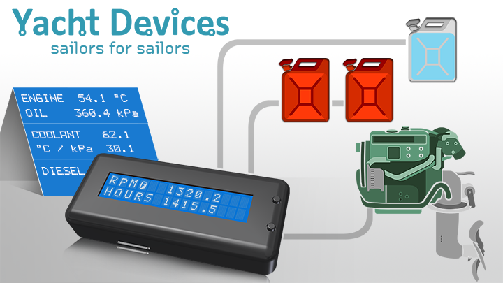 With this firmware for the Text Display YDTD-20, you can monitor up to four engines and transmissions, temperature in the exhaust system, the vessel's trim tabs, four batteries, four diesel and four gasoline tanks and three fresh water and three black water tanks.